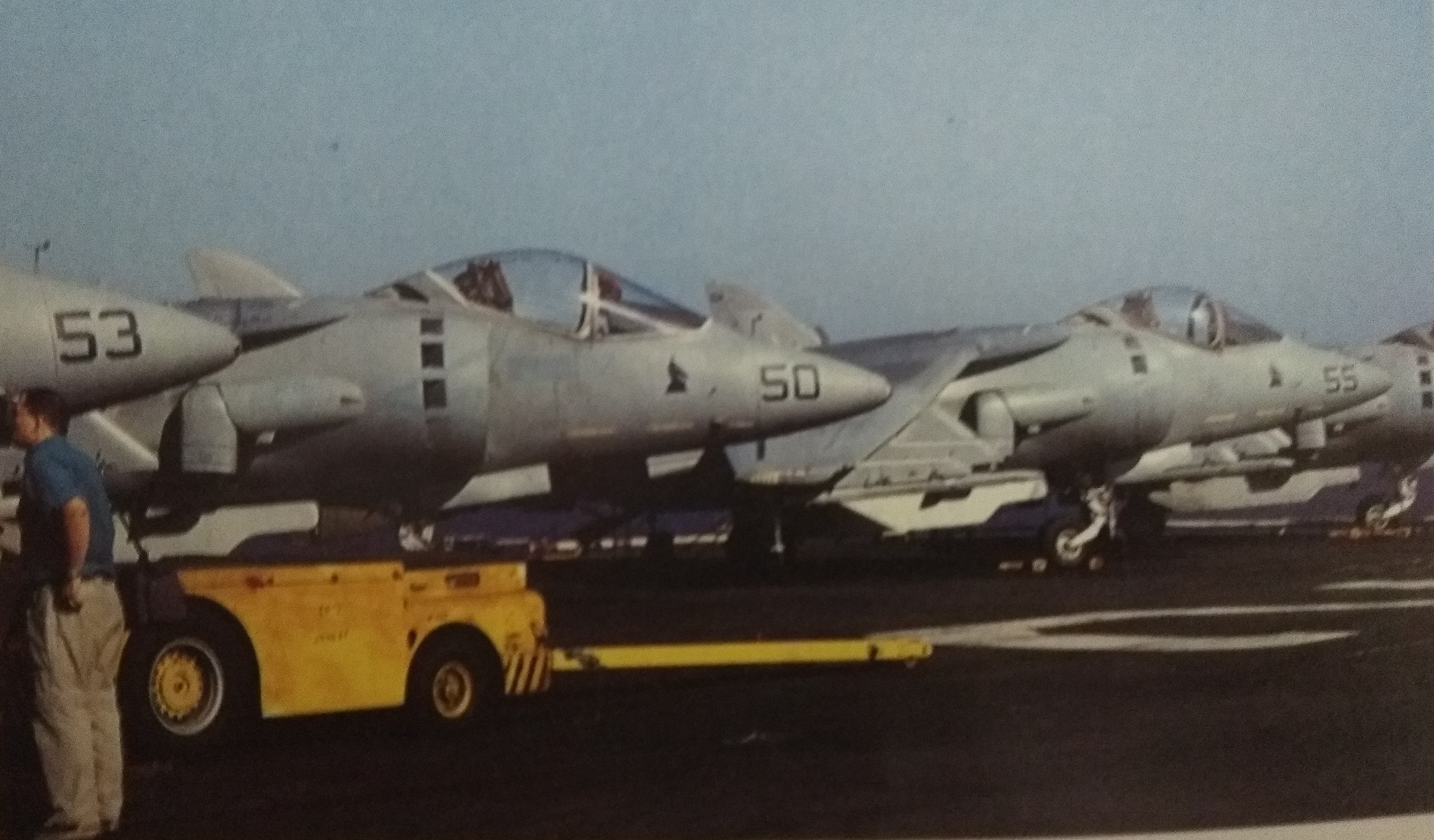 Είχαμε πλέον αρχίσει να συνηθίζουμε στο θορυβώδες ταξίδι με το Super Stallion, όταν προσεγγίσαμε το ελικοπτεροφόρο SAIPAN. Μετά από μερικούς κύκλους γύρω από το πλοίο για τις καθιερωμένες φωτογραφίες προσνηωθήκαμε στο κατάστρωμα πτήσεων. Μας υποδέχθηκε ο κυβερνήτης του πλοίου Πλοίαρχος G. Rhodes.
