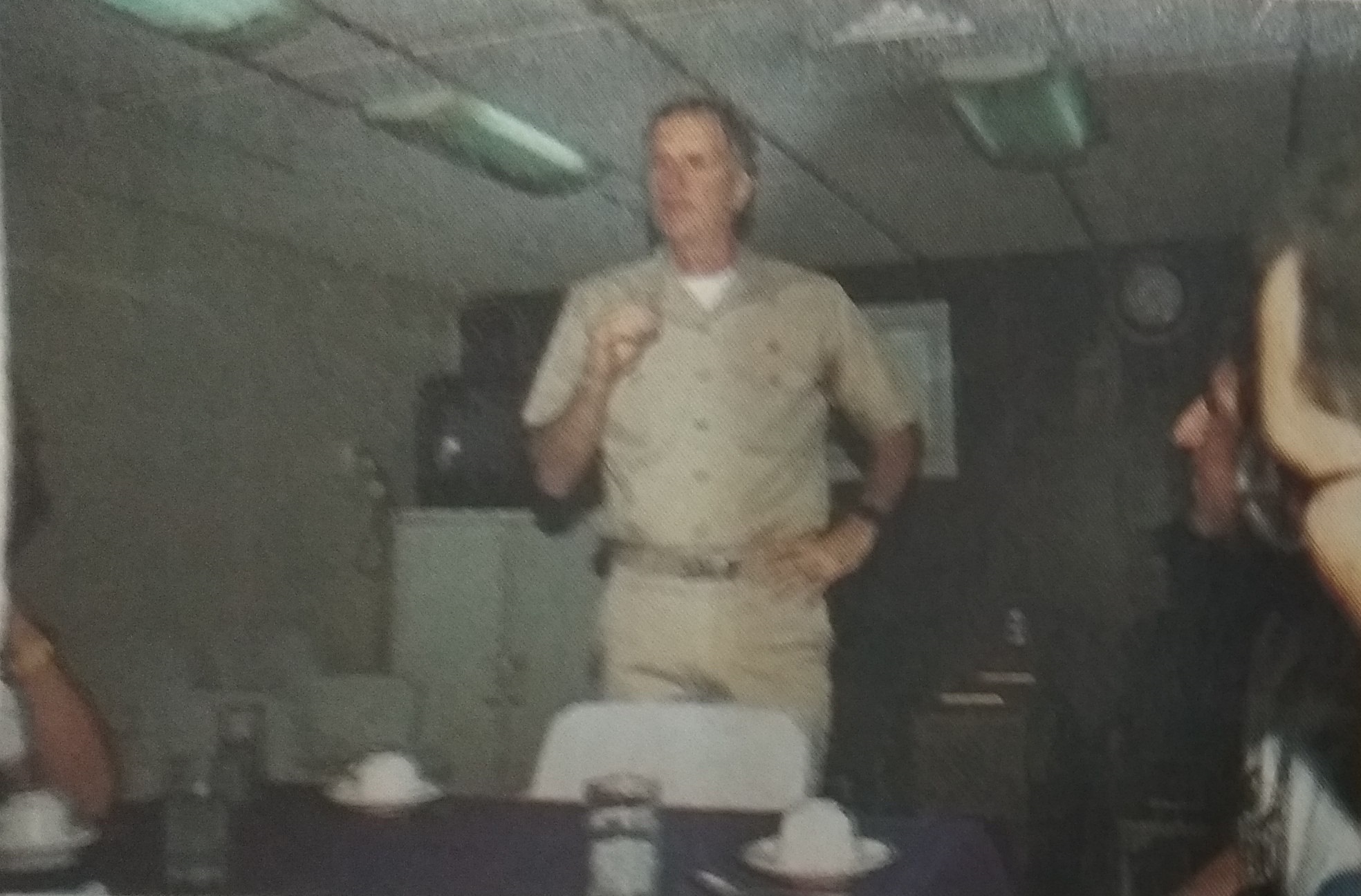 H ενδιαφέρουσα συζήτηση συνεχίσθηκε μέχρι το τέλος του δείπνου. Στη συνέχεια συναντήσαμε έναν ακόμα Ελληνοαμερικανό μέλος του πληρώματος του SAIPAN. Ήταν ο Κυριάκος Ανδριόπουλος που υπηρετούσε σαν υπαξιωματικός (Senior chief petty Officer), με ειδικότητα στους υπολογιστές και 26χρονη υπηρεσία στο ναυτικό που περιελάμβανε και την περίοδο του Βιετνάμ, όπου είχε υπηρετήσει σαν κυβερνήτης ταχύπλοου σκάφους.