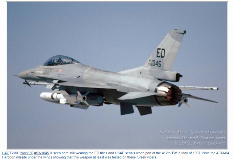 Όλοι θυμόμαστε την πρόσφατη SINKEX όπου έγιναν βολές Maverick, όπως και την πρόσφατη επίσκεψη του πρωθυπουργού στη Σούδα, όπου το F-16 ήταν φορτωμένο επίσης με Maverick. Το βασικό σχόλιο ήταν πως εν έτη 2020, ο συνδυασμός αυτός δεν θα έκανε ακριβώς τον εχθρικό στόλο να χάσει τον ύπνο του… Πολλοί τότε αναρωτηθήκαμε πόσο πιο απειλητική θα ήταν αυτή η φωτογραφία με δύο Harpoon. Αλήθεια γιατί δεν έχουμε Harpoon; Τα F-16 μας είναι ήδη πιστοποιημένα στο βλήμα.
