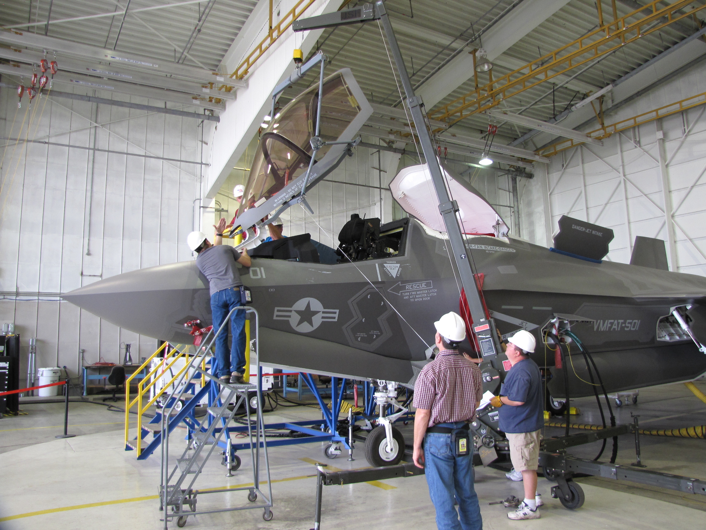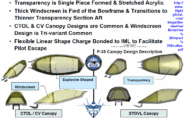 Στο JSF όμως η επιλογή αυτή έγινε για άλλους λόγους, που έχουν να κάνουν με την ανάγκη της όσο το δυνατόν υψηλότερης συνάφειας ανάμεσα στις τρεις εκδόσεις. Έτσι, για την απλοποίηση της κοινής δομής στο σημείο πίσω από το πιλοτήριο, όπου η έκδοση STOVL φιλοξενεί τον «ανεμιστήρα ανύψωσης» (lift fan) η άρθρωση της καλύπτρας μετακινήθηκε εμπρός.