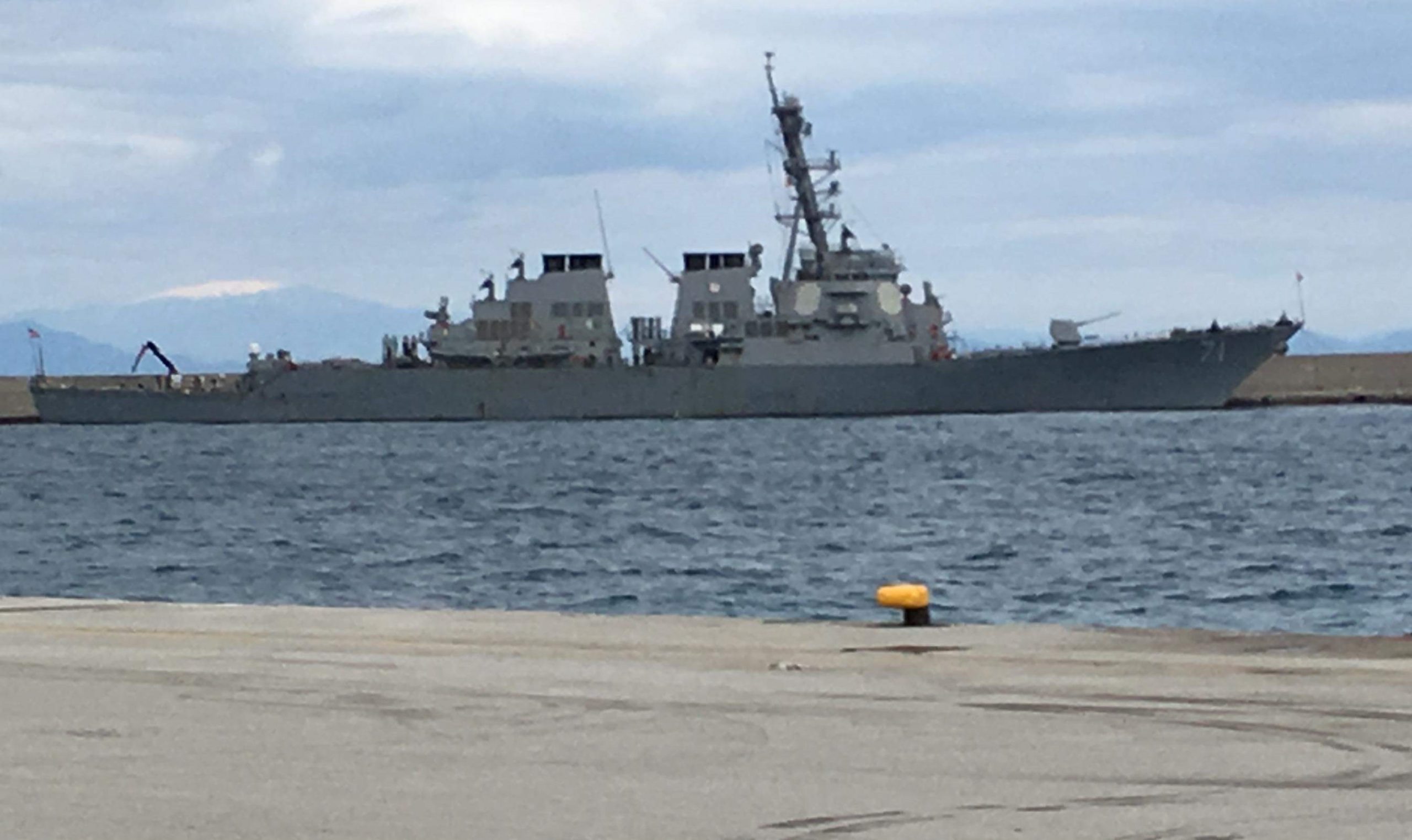Μία κοντινή λήψη στο αμερικανικό πλοίο, όπου διακρίνεται και το νεότατο σύστημα SeaRAM που απέκτησε στα πλαίσια της πρόσφατης αναβάθμισής του.