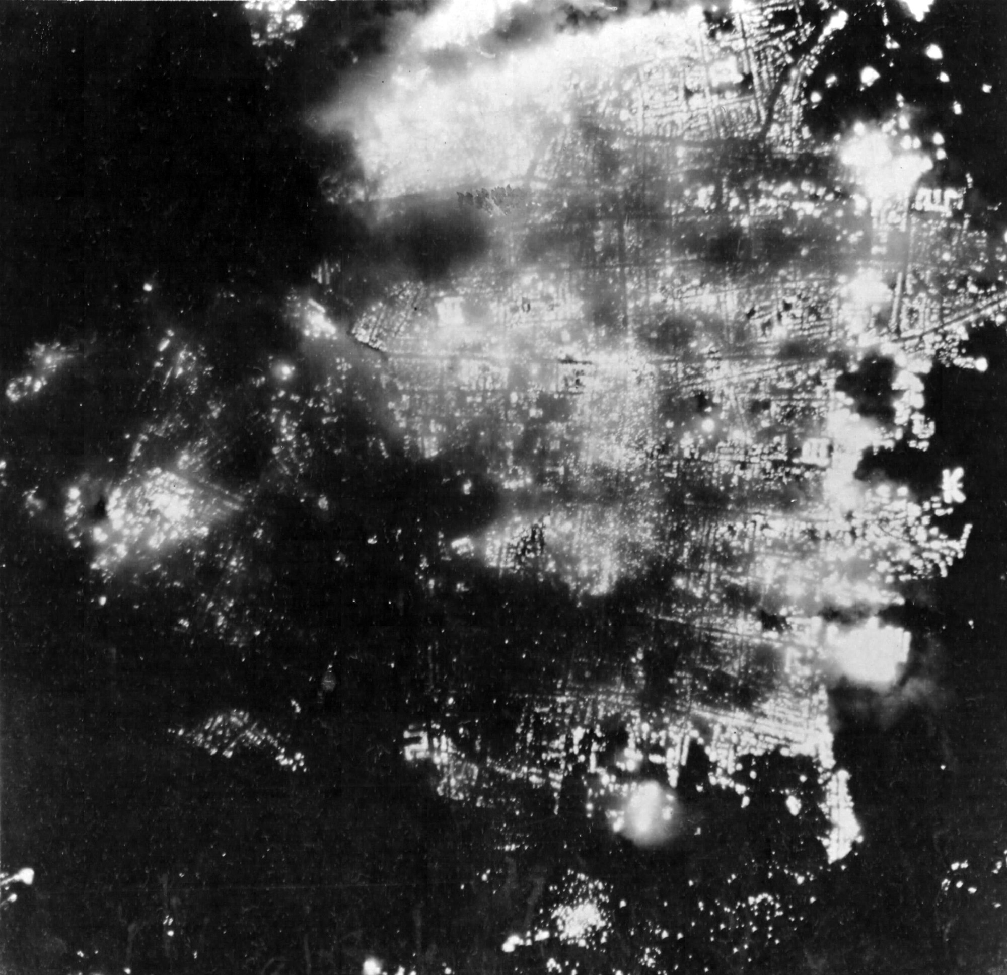 Λίγο μετά τις 23:00 μμ τοπική ώρα, ο ανατριχιαστικός ήχος των σειρήνων πνίγηκε από τον βρυχηθμό εκατοντάδων κινητήρων R-3350 που αγκάλιασε δυσοίωνα την πόλη από άκρη σε άκρη. Η κύρια δύναμη των βομβαρδιστικών είχε φθάσει, με τις θυρίδες της αποθήκης βομβών ανοικτές… Τα προπορευόμενα Β-29 των Pathfinders έριχναν ήδη τις εμπρηστικές που οι Ιάπωνες ονόμαζαν «μολότοφάνο χανάκαγκό» (καλάθια λουλουδιών Μολότοφ) σχηματίζοντας ένα πύρινο Χ στην ζώνη του στόχου.
