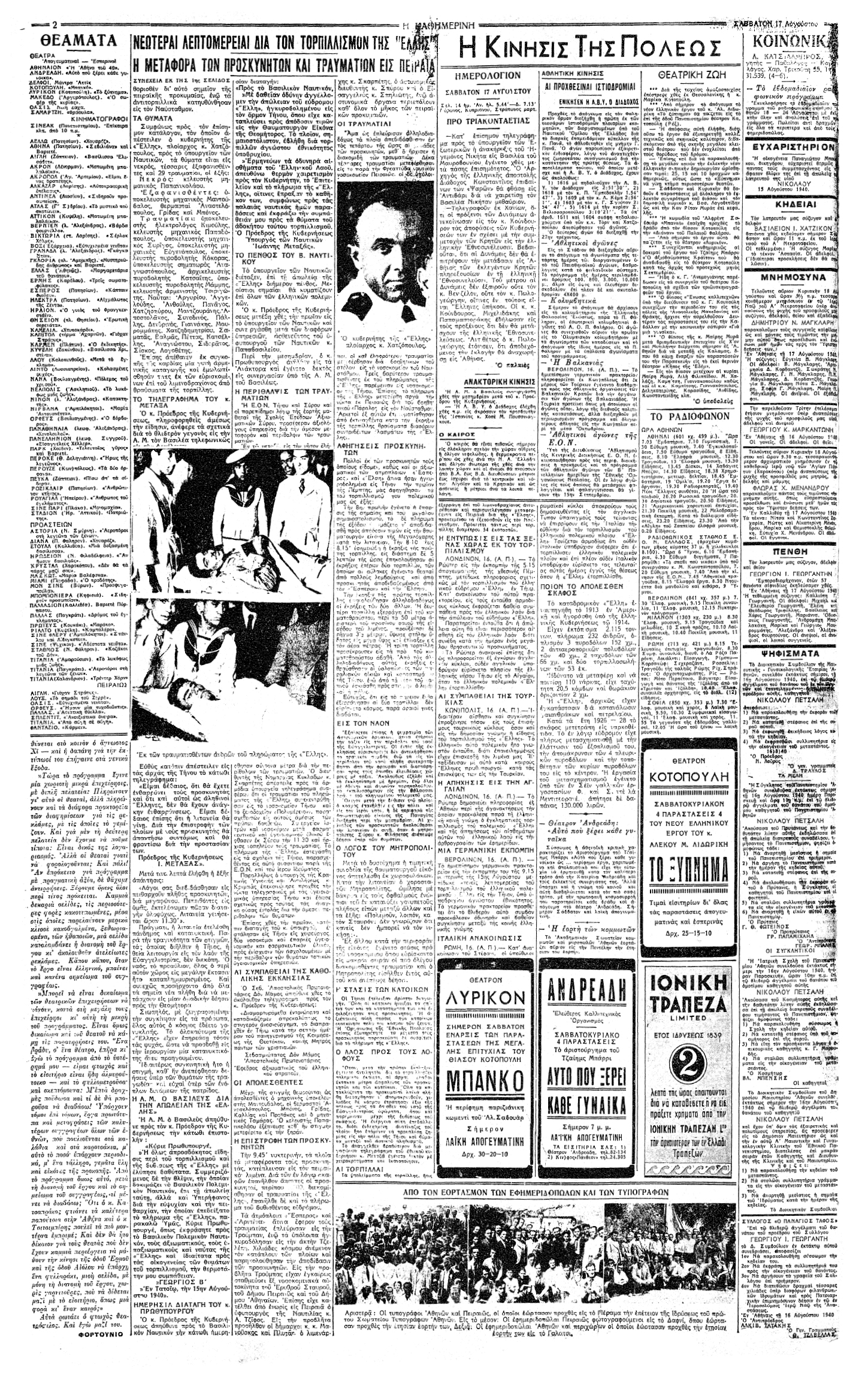 H εφημερίδα αναφέρει επίσης την υπερπτήση αγνώστου αεροσκάφους πάνω από την Τήνο στις 15 και 16 Αυγούστου. Αργότερα, διαπιστώθηκε πως επρόκειτο για ιταλικό αναγνωριστικό που πρωτοεθεάθη στις 06:45 το πρωί της 15ης, ερχόμενο από ανατολικά, σε ύψος 1.200 μέτρων. Το πλήρωμα της “Έλλης”, επάνδρωσε τα Α/Α πυροβόλα, αλλά διατάχτηκε να μην ανοίξει πυρ.