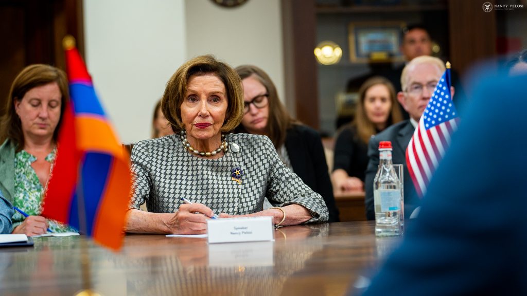 Η Πελόζι επισκέφθηκε την Αρμενία το Σαββατοκύριακο, σε μια πρωτοφανή επίδειξη αμερικανικής υποστήριξης προς τη χώρα, η οποία για περισσότερο από τρεις δεκαετίες βρίσκεται σε διαμάχη με το γειτονικό Αζερμπαϊτζάν για την αποσχισθείσα περιοχή του Ναγκόρνο Καραμπάχ.