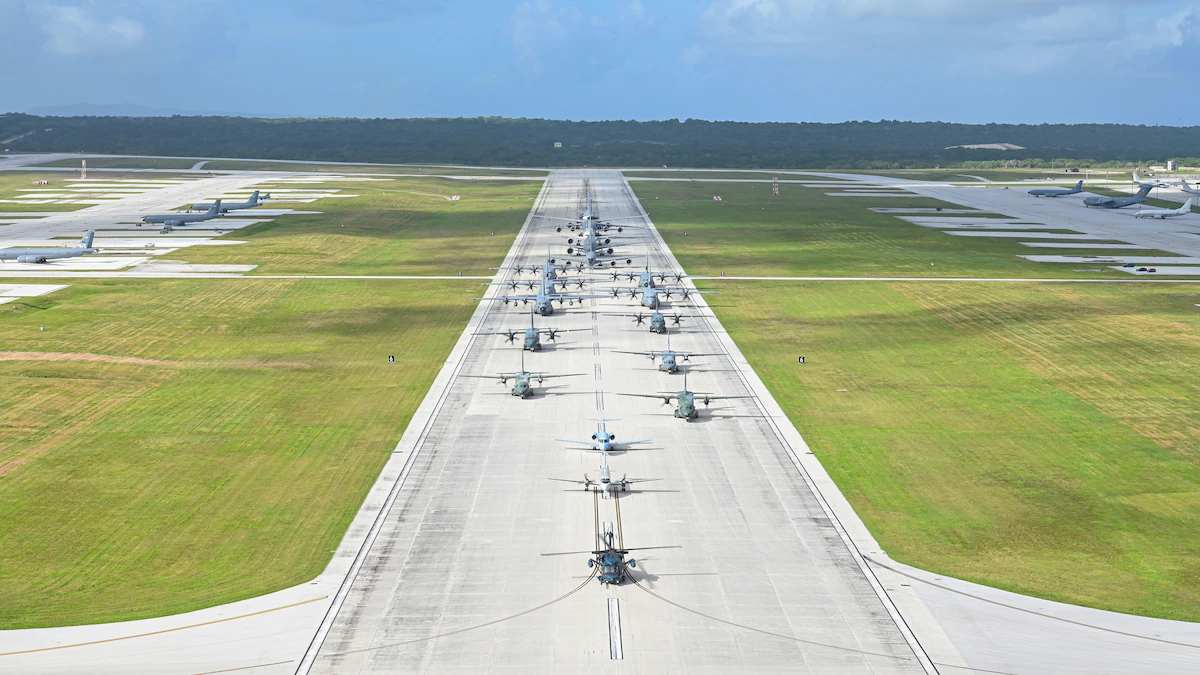 Όταν συγκεντρώνονται τρεις αεροπορίες μαζί για ένα “Elephant Walk” το αποτέλεσμα δεν μπορεί παρά να είναι εντυπωσιακό. Την Κυριακή που μας πέρασε, 18 αεροσκάφη των πολεμικών αεροποριών των ΗΠΑ, της Αυστραλίας, της Ιαπωνίας και των συμμάχων τους πραγματοποίησαν μια επίδειξη τροχοδρόμησης εδάφους στην αεροπορική βάση Andersen στο Guam ως πρελούδιο της κοινής άσκησης Cope North 2022.