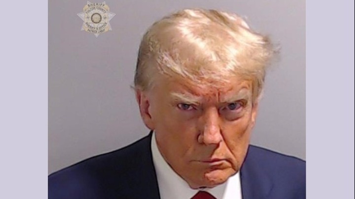 Η εν λόγω φωτογραφία του με κόκκινη γραβάτα, μαλλιά που λάμπουν και βλοσυρό βλέμμα τραβήχτηκε καθώς ο Ρεπουμπλικανός υποψήφιος για τις προεδρικές εκλογές συνελήφθη για πάνω από 12 κατηγορίες σε βαθμό κακουργήματος στο πλαίσιο ποινικής υπόθεσης, στην οποία κατηγορείται ότι επιχείρησε να ανατρέψει το αποτέλεσμα των εκλογών του 2020.