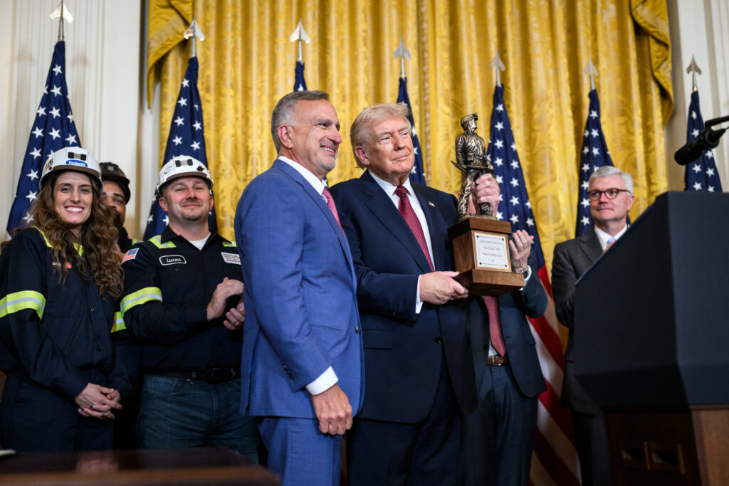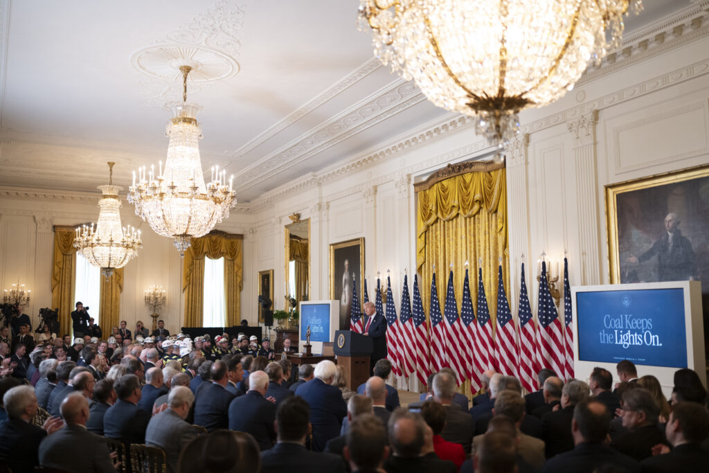 Ο ρεπουμπλικάνος δισεκατομμυριούχος υπέγραψε προεδρικό εκτελεστικό διάταγμα κατά τη διάρκεια τελετής στον Λευκό Οίκο, πλαισιωμένος από ανθρακωρύχους με τα κράνη ασφαλείας τους στα κεφάλια.