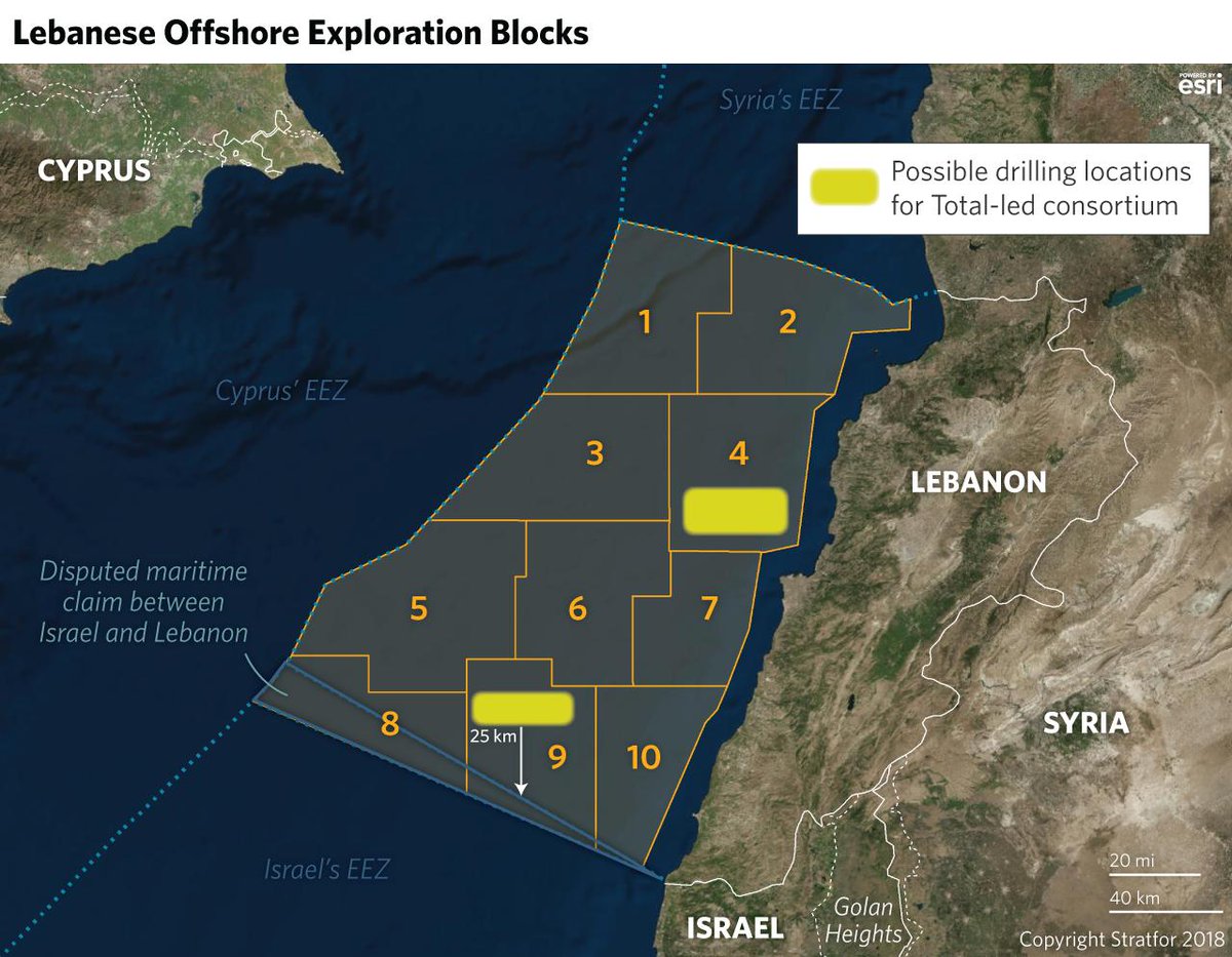 Το Οικόπεδο 4 βρίσκεται βόρεια της πρωτεύουσας Βηρυτού. Σε δεύτερο χρόνο θα ακολουθήσουν γεωτρήσεις στο Οικόπεδο 9. Το τελευταίο συνορεύει με την ΑΟΖ του Ισραήλ, με τη Βηρυτό να πιστεύει ότι το Τελ-Αβίβ έχει συμπεριλάβει στη δική του περιοχή μέρος της δικής της Αποκλειστικής Οικονομικής Ζώνης.