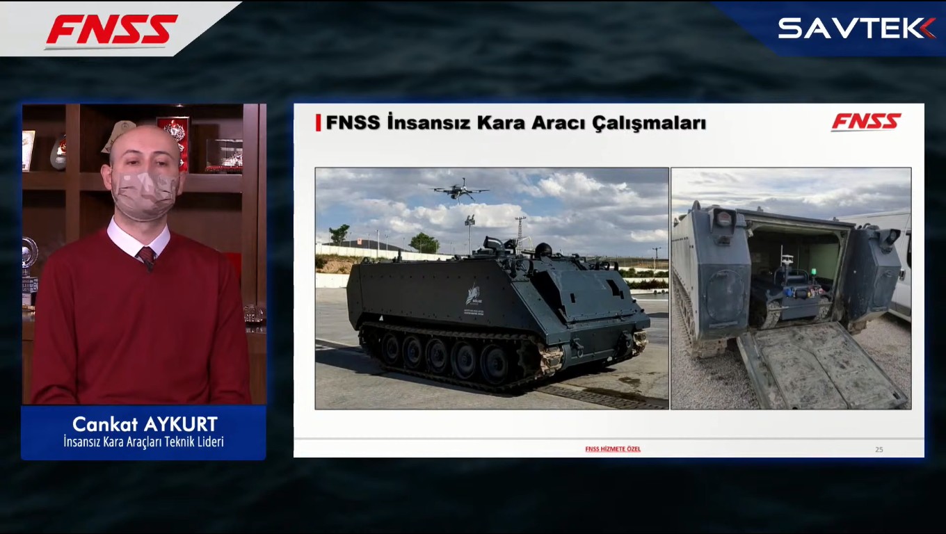 Με βάση τουρκικό δημοσίευμα η εταιρία FNSS (που παράγει μια σειρά τεθωρακισμένων όπως το Kaplan και την οικογένεια ΤΟΜΑ/ΤΟΜΠ ACV) πειραματίζεται με ένα τηλεχειριζόμενο Μ113, σε συνδυασμό με άλλα μικρότερα ρομποτικά οχήματα και UAV.