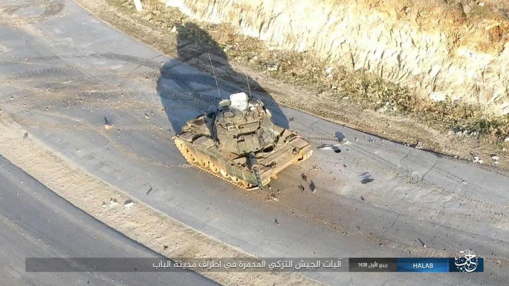 Όπως φαίνεται σε βίντεο, τα τουρκικά άρματα δέχτηκαν πλήγματα από αεροσκάφη που ήταν, το πιθανότερο, ρωσικά Su-24. Η επιχείρηση έγινε στην πόλη Al-Nayrab και τα ρωσικά αεροσκάφη διακρίνονται να ρίχνουν βόμβες σε στόχους γύρω από λόφο ο οποίος δεσπόζει στην περιοχή. Οι αντάρτες έχουν λάβει τεθωρακισμένα M113 και ACV-15 από την Τουρκία, όπως επίσης πυροβόλα M114. Εκτός από άρματα μάχης, ο Τουρκικός Στρατός χρησιμοποιεί πυροβόλα T-155 Firtina και ρουκετοβόλα T-122 για την υποστήριξη των «Αντικαθεστωτικών».