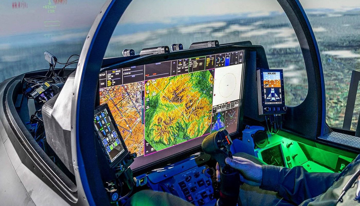 Το νέο προτεινόμενο κοκπιτ για το Eurofighter από την BAE Systems, με ενιαία μεγάλη οθόνη πολλαπλών χρήσεων.