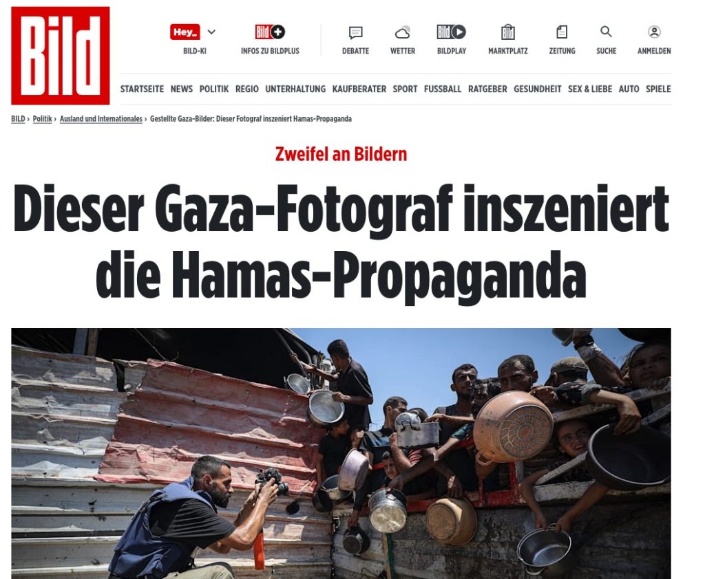 Η Bild, σε εκτενές ρεπορτάζ της στις 5 Αυγούστου 2025, επικεντρώνεται στον Άνας Ζαγιέντ Φτεϊχά, έναν Παλαιστίνιο φωτογράφο από τη Γάζα, ο οποίος συνεργάζεται με το Anadolu, το κρατικό πρακτορείο ειδήσεων της Τουρκίας. Σύμφωνα με την εφημερίδα, οι φωτογραφίες του Φτεϊχά, που απεικονίζουν σκηνές λιμού και απόγνωσης, όπως παιδιά με εμφανή υποσιτισμό ή απελπισμένους ανθρώπους να κρατούν άδεια δοχεία, είναι προσεκτικά επιλεγμένες για να προκαλούν μέγιστο συναισθηματικό αντίκτυπο.
