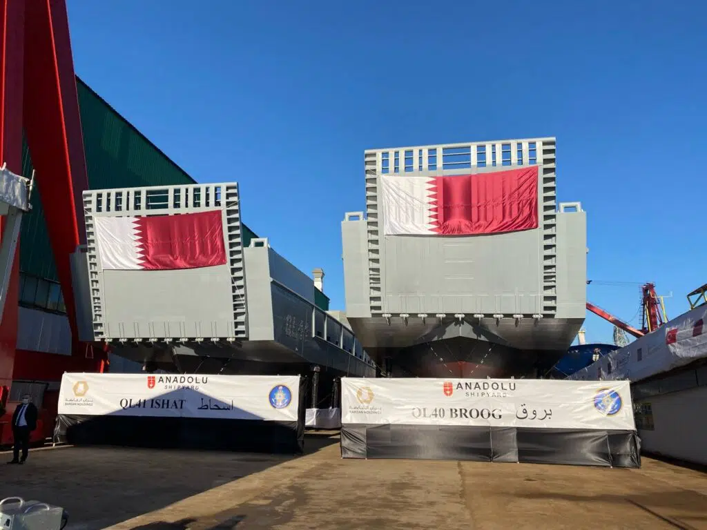 Τα ναυπηγεία Anadolu ξεκίνησαν την κατασκευή τον Ιούλιο του 2021 και τα είχαν έτοιμα προς καθέλκυση σε διάστημα μόλις 7,5 μήνες. Μόλις παραδοθούν, όπως αναμένεται τον Αύγουστο φέτος, θα φτάσουν στο Κατάρ το Σεπτέμβριο.