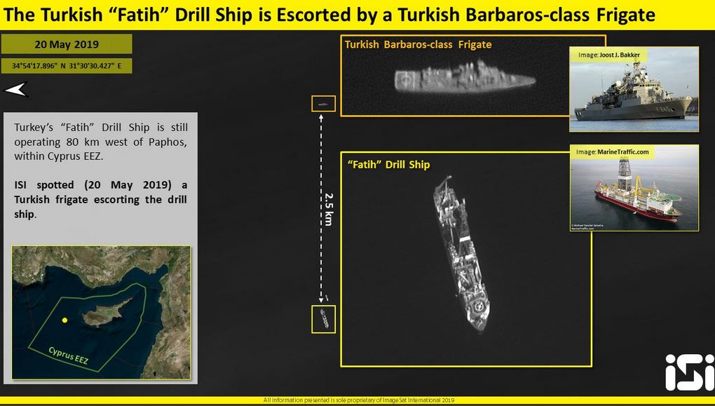 Το Φατίχ συνοδεύεται τουλάχιστον από μια φρεγάτα, ενώ το Γιαβούζ φέρεται α συνοδεύεται από δυο. Το Μπαρμπαρός βρίσκεται στα νότια της κυπριακής ΑΟΖ, ενώ περα από την ανακοίνωση του τουρκικού Υπουργείου Άμυνας, δεν υπάρχει άλλη αναφορά που να επιβεβαιώνει την παρουσία πολεμικού πλοίου δίπλα του.