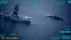 Το τουρκικό Υπουργείο Εθνικής Άμυνας έδωσε στη δημοσιότητα το παρακάτω βίντεο όπου απεικονίζεται πλωτό γεωτρύπανο (δεν διακρίνεται αν είναι το Γιαβούζ ή το Φατίχ) στη κυπριακή ΑΟΖ να συνοδεύεται από φρεγάτα.