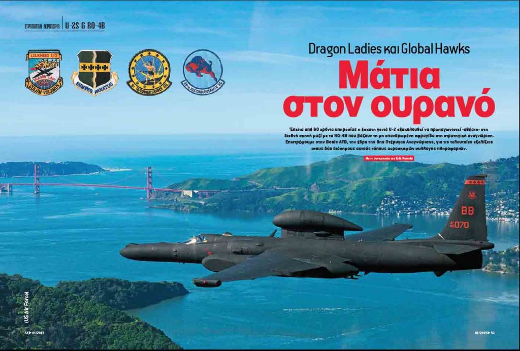 Έπειτα από 60 χρόνια υπηρεσίας η έσχατη γενιά U-2 εξακολουθεί να πρωταγωνιστεί -αθέατη- στη διεθνή σκηνή μαζί με τα RQ-4B που βάζουν τη μη επανδρωμένη σφραγίδα στη στρατηγική αναγνώριση. Στο τεύχος μας που κυκλοφορεί επιστρέφουμε στην Beale AFB, την έδρα της 9ης Πτέρυγας Αναγνώρισης, για τις τελευταίες εξελίξεις στους δύο διάσημους αυτούς τύπους αεροσκαφών συλλογής πληροφοριών. Πότε τα Dragon Lady θα παραχωρήσουν τη θέση τους στα Glabal Hawk;