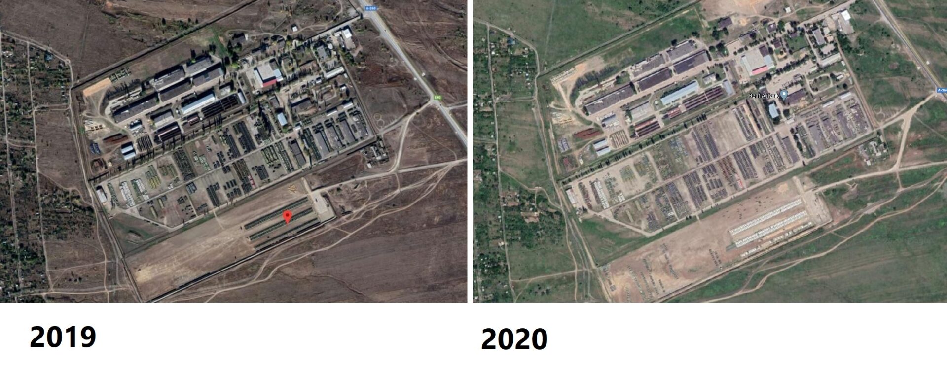 Δορυφορικές φωτογραφίες μέσω Google Earth εμφανίζουν σημαντική αύξηση των αρμάτων μάχης και των τεθωρακισμένων οχημάτων σε μια στρατιωτική βάση στο Kamensk-Shakhtinsky, μόλις 18 χλμ. από τα σύνορα Ρωσίας με τις περιοχές που ελέγχουν οι αυτονομιστές. Συγκριτικά με το προηγούμενο έτος ο αριθμός των οχημάτων έχει αυξηθεί σημαντικά, περιλαμβάνοντας άρματα τύπου Τ-64 και Τ-64Μ καθώς και χίλια και πλέον φορτηγά, τεθωρακισμένα οχήματα και συστήματα πυροβολικού.