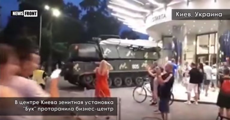 Ένα ερπυστριοφόρο Α/Α σύστημα BUK, είχε μια αναπάντεχη συνάντηση με είσοδο κτιρίου στο Κίεβο.