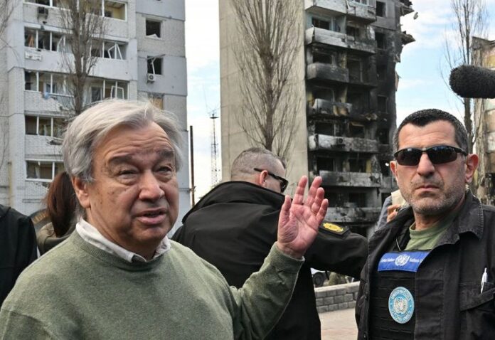 Ο κ. Γκουτέρες μάλιστα έκανε αυτές τις δηλώσεις από την πόλη Μοροντιάνκα,  προάστιο του Κιέβου, στο οποίο οι Ουκρανοί κατηγορούν τους Ρώσους ότι διέπραξαν φρικαλεότητες κατά του άμαχου πληθυσμού.