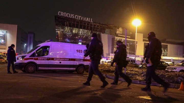 Τουλάχιστον 62 άνθρωποι σκοτώθηκαν και 146 τραυματίστηκαν κατά την τρομοκρατική επίθεση, το βράδυ της Παρασκευής, σε αίθουσα συναυλιών στα βορειοδυτικά προάστια της Μόσχας, σύμφωνα με πληροφορίες που μεταδίδουν ρωσικά μέσα ενημέρωσης. Την ευθύνη για την επίθεση ανέλαβε, μέσω ανάρτησης στο Telegram, η τζιχαντιστική οργάνωση Ισλαμικό Κράτος.
