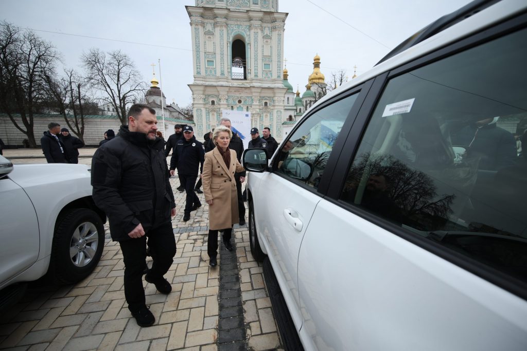 Σήμερα, η πρόεδρος της Ευρωπαϊκής Επιτροπής Ούρσουλα φον ντερ Λάιεν παρέδωσε 50 αυτοκίνητα που παρείχε η ΕΕ στην εθνική αστυνομία της Ουκρανίας (NPU) και στο Γραφείο του Γενικού Εισαγγελέα (OPG) της Ουκρανίας. Τα αυτοκίνητα θα χρησιμοποιηθούν για την υποστήριξη της έρευνας και της δίωξης εγκλημάτων πολέμου. Η παράδοση αποτελεί μέρος ενός ευρύτερου προγράμματος στήριξης της ΕΕ προς τις ουκρανικές αρχές για να ανταποκριθούν σε ανάγκες που σχετίζονται με δημόσιες υπηρεσίες σε περιβάλλοντα υψηλού κινδύνου.