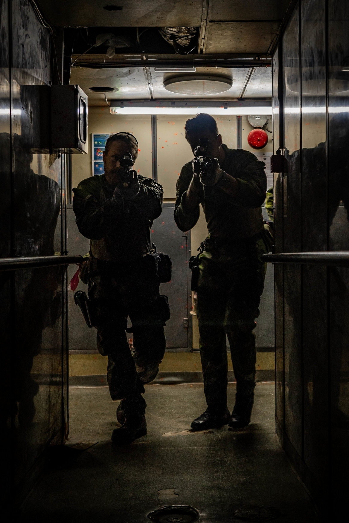 Swedish Marines with 4th Marine Regiment, Swedish Amphibious Corps practice close quarters combat tactics during exercise TYR 22 at the NATO Maritime Interdiction Operational Training Centre (NMIOTC) in Souda bay, Greece, July 13, 2022. TYR 22 is a maritime interdiction operations exercise held at NMIOTC, bringing together Swedish Marines, U.S. Marines, U.S. Navy Special warfare combatant-craft crewmen to improve US and NATO Partner operational capacity, capability, and interoperability. (U.S. Marine Corps photo by Sgt. William Chockey)
