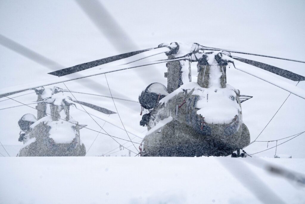 Λευκό πέπλο κάλυψε την αεροπορική βάση Katterbach, στο Ansbach της Βαυαρίας. Αυτή στεγάζει τα μέσα της 12ης Ταξιαρχίας της Αμερικανικής Αεροπορίας Στρατού, δηλαδή μεταγωγικά ελικόπτερα CH-47F Chinook και επιθετικά AH-64E Apache.