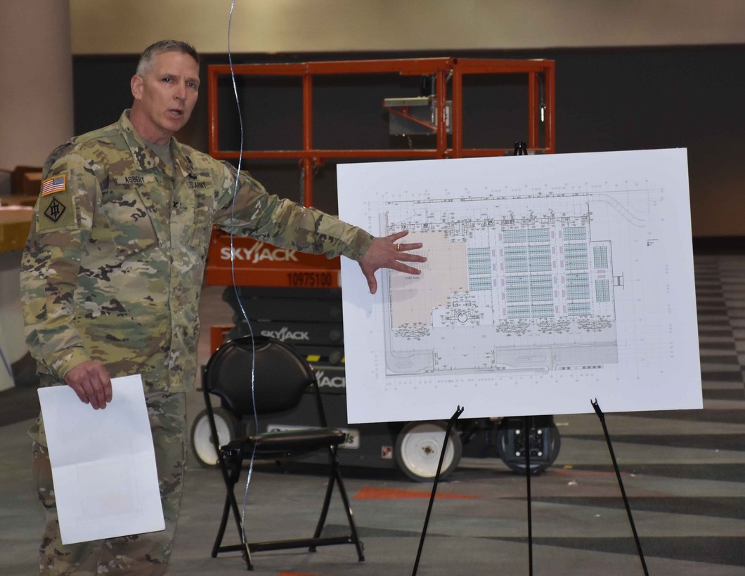 Ο διοικητής της διεύθυνσης Μηχανικού της περιφέρειας της Νέας Υόρκης εξηγεί το σχέδιο οργάνωσης του νοσοκομειακού κέντρου στο Jarvis Center (φωτογραφία: US Army Corps of Engineers)