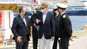 Δύο σκάφη της αμερικανικής Ακτοφυλακής, τύπου USCG Cutters, που έχουν καταπλεύσει στο λιμάνι του Πειραιά, επισκέφθηκε το πρωί ο υπουργός Ναυτιλίας και Νησιωτικής Πολιτικής, Γιάννης Πλακιωτάκης, μαζί με τον πρέσβη των Ηνωμένων Πολιτειών της Αμερικής στην Αθήνα, Τζέφρι Πάιατ (Geoffrey Pyatt) και τον αρχηγό του Λιμενικού Σώματος, αντιναύαρχο Θεόδωρο Κλιάρη.