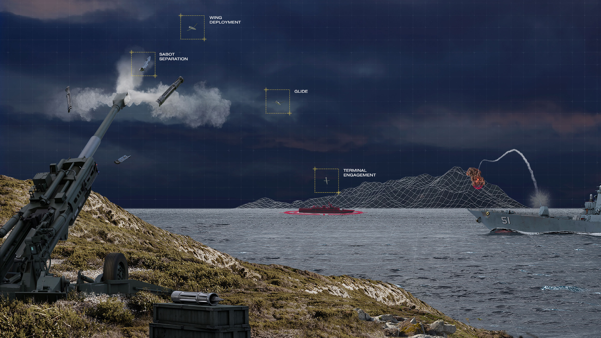 To Αμερικανικό Ναυτικό επενδύει στην εξέλιξη και ανάπτυξη του προηγμένου πυρομαχικού μεγάλης εμβέλειας LRMP, αναθέτοντας σχετική σύμβαση στην κατασκευάστρια General Atomics Electromagnetic Systems. Πρόκειται για ένα κατευθυνόμενο βλήμα πυροβολικού που επιτυγχάνει εμβέλειες της τάξης των 120χλμ. χωρίς υποβοήθηση πρόωσης, μιας και οι αναδιπλούμενες πτέρυγες και ο ειδικά διαμορφωμένος σχεδιασμός του, επιτρέπουν την ολίσθηση σε μεγάλες αποστάσεις.