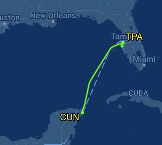 Το Airbus A320 της JetBlue Airways, που εκτελούσε την πτήση 1230, είχε αναχωρήσει από το Κανκούν με προορισμό το διεθνές αεροδρόμιο Νιούαρκ Λίμπερτι στο Νιου Τζέρσεϊ. Αποφασίστηκε εκτροπή προς το αεροδρόμιο της Τάμπα στη Φλόριντα, όπου το αεροσκάφος προσγειώθηκε στις 14:19 της Πέμπτης (τοπική ώρα, 20:19 στην Ελλάδα).