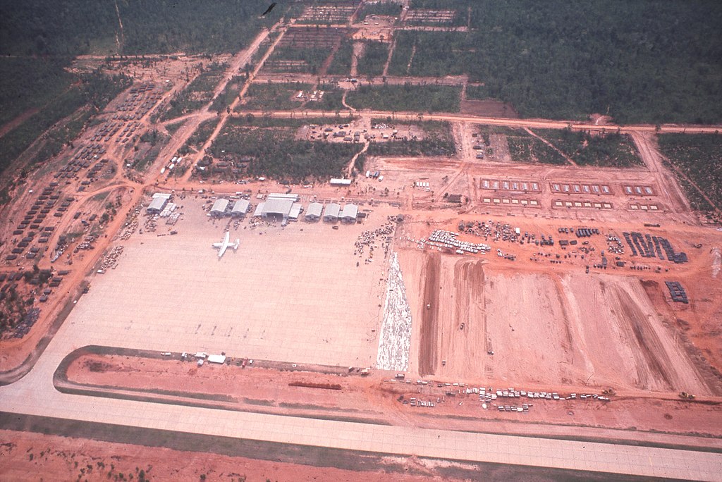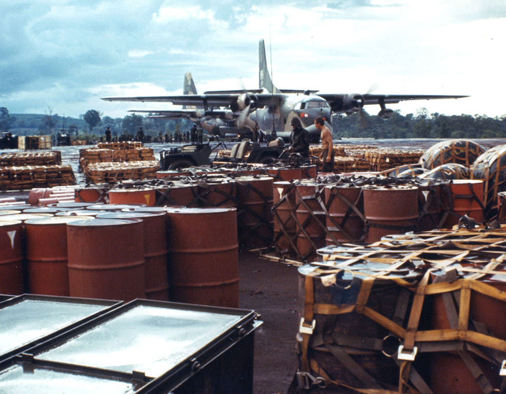 Fairchild C-123K Provider και Lockheed C-130A Hercules της USAF έχουν προσγειωθεί σε χωματόδρομο της Καμπότζης και εκφορτώνουν καύσιμα για τις μονάδες του Αμερικανικού Στρατού που έχουν εισβάλει στη χώρα εξορμώντας από το Ν. Βιετνάμ, άνοιξη 1970