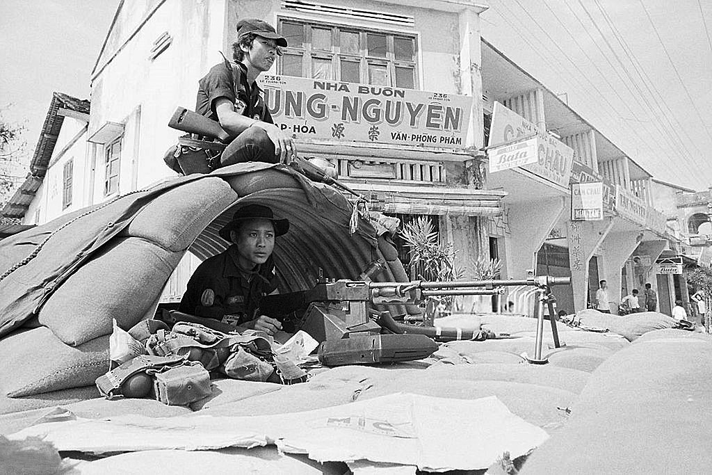 Νοτιοβιετναμέζοι στρατιώτες σε πρόχειρη οχύρωση στο Kontum στα Κεντρικά Υψίπεδα περιμένουν τους Βορείους, με τον άγριο τρόμο ενώπιον ενός υπέρτερου αντιπάλου ζωγραφισμένο στα πρόσωπά τους. Ο Βορειοβιετναμέζος πεζικάριος έθεσε, με την καρτερία, την ασκητικότητα, το ακατάβλητο φρόνημα και την απόλυτη αφοσίωσή του, τα στάνταρντς για όλο το β΄ ήμισυ του 20ου αιώνος.