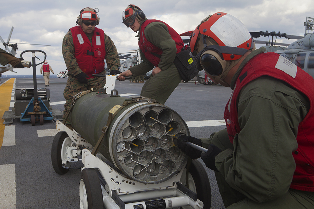γ) πυραύλους AGM-65F Maverick (IIR) με βαρεία εκρηκτική (αντί της αντιαρματικής ΗΕΑΤ) γόμωση σε αντιπλοϊκό ρόλο κατά μικρών σκαφών, και