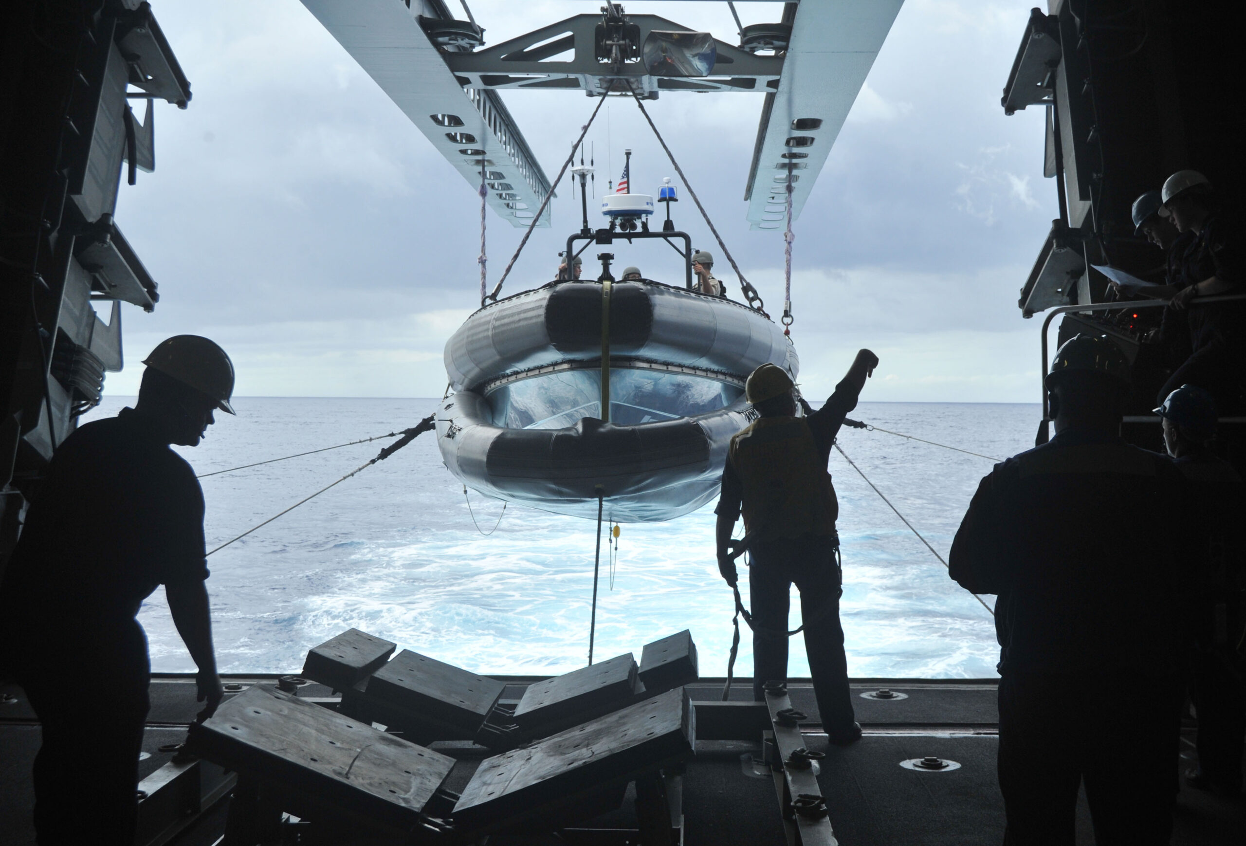 U.S. Navy Sailors hoist a rigid-hulled inflatable boat from the littoral combat ship USS Independence (LCS 2) during Rim of the Pacific (RIMPAC) Exercise 2014. Twenty-two nations, 49 ships and six submarines, more than 200 aircraft and 25,000 personnel are participating in RIMPAC from June 26 to Aug. 1 in and around the Hawaiian Islands and Southern California. The world’s largest international maritime exercise, RIMPAC provides a unique training opportunity that helps participants foster and sustain the cooperative relationships that are critical to ensuring the safety of sea lanes and security on the world’s oceans. RIMPAC 2014 is the 24th exercise in the series that began in 1971. (U.S. Navy photo by Mass Communication Specialist 2nd Class Corey T. Jones/Released)