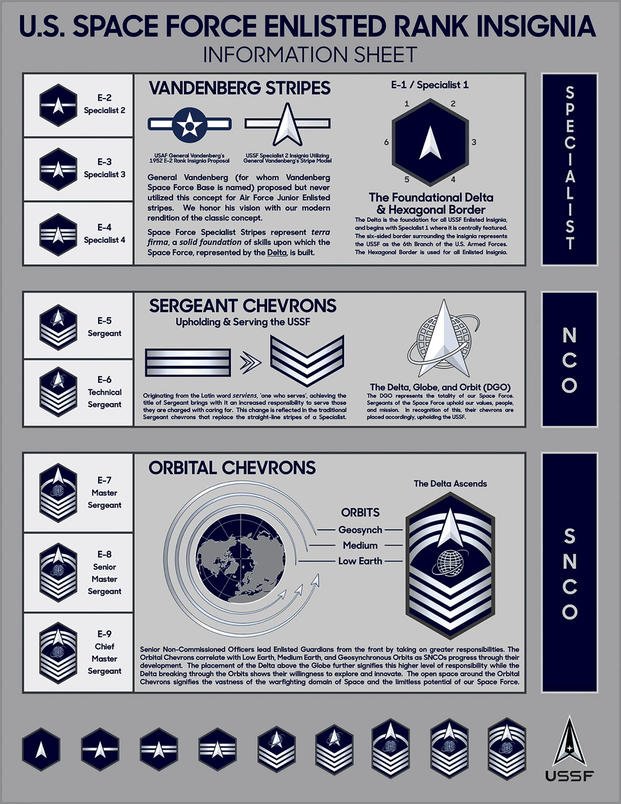 Ακολουθώντας το ίδιο μοτίβο, τα διακριτικά των υπαξιωματικών της USSF, που παρουσιάστηκαν αυτές τις μέρες, δείχνουν να έχουν σαφή επιρροή από το Star Trek.