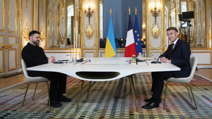 Ο Βολοντίμιρ Ζελένσκι βρίσκεται στο Μέγαρο των Ηλυσίων για να συναντήσει τον Εμανουέλ Μακρόν και να επικυρώσει τη στήριξη των Ευρωπαίων προς το Κίεβο την ώρα που ο ίδιος βρίσκεται σε δυσχερή πολιτικά θέση ενώ οι Ηνωμένες Πολιτείες ηγούνται εντατικών διπλωματικών διαπραγματεύσεων για τον τερματισμό του πολέμου.