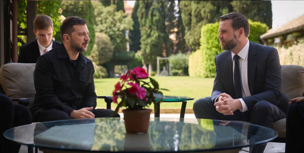 Ο πρόεδρος της Ουκρανίας Βολοντίμιρ Ζελένσκι συναντήθηκε σήμερα στη Ρώμη με τον αντιπρόεδρο των ΗΠΑ Τζέι Ντι Βανς και συνομίλησαν για «περίπου μισή ώρα», έπειτα από μια συνάντηση με τον πάπα Λέοντα ΙΔ στο Βατικανό, είπε στο Γαλλικό Πρακτορείο Ειδήσεων (AFP) ένας Ουκρανός υψηλόβαθμος αξιωματούχος.