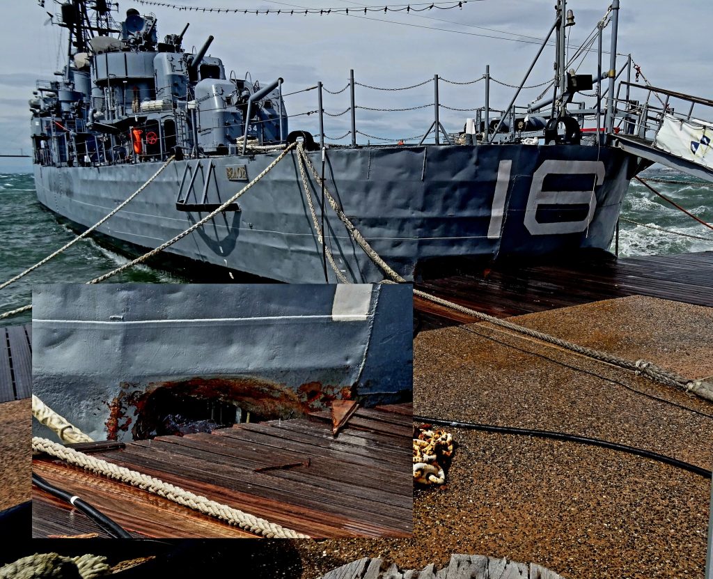 Με αβαρίες είναι πλέον το ιστορικό αντιτορπιλικό «Βέλος», μετά τη χθεσινή κακοκαιρία, που έπληξε τη Θεσσαλονίκη με θυελλώδεις βορειοδυτικούς ανέμους. Στο αγκυροβολημένο στη Νέα Παραλία πλοίο, που λειτουργεί ως μουσείο και έχει δεχθεί χιλιάδες επισκέψεις, έσπασαν οι κάβοι των προστατευτικών μπαλονιών του, με αποτέλεσμα αυτό να χτυπήσει πάνω στον ντόκο.