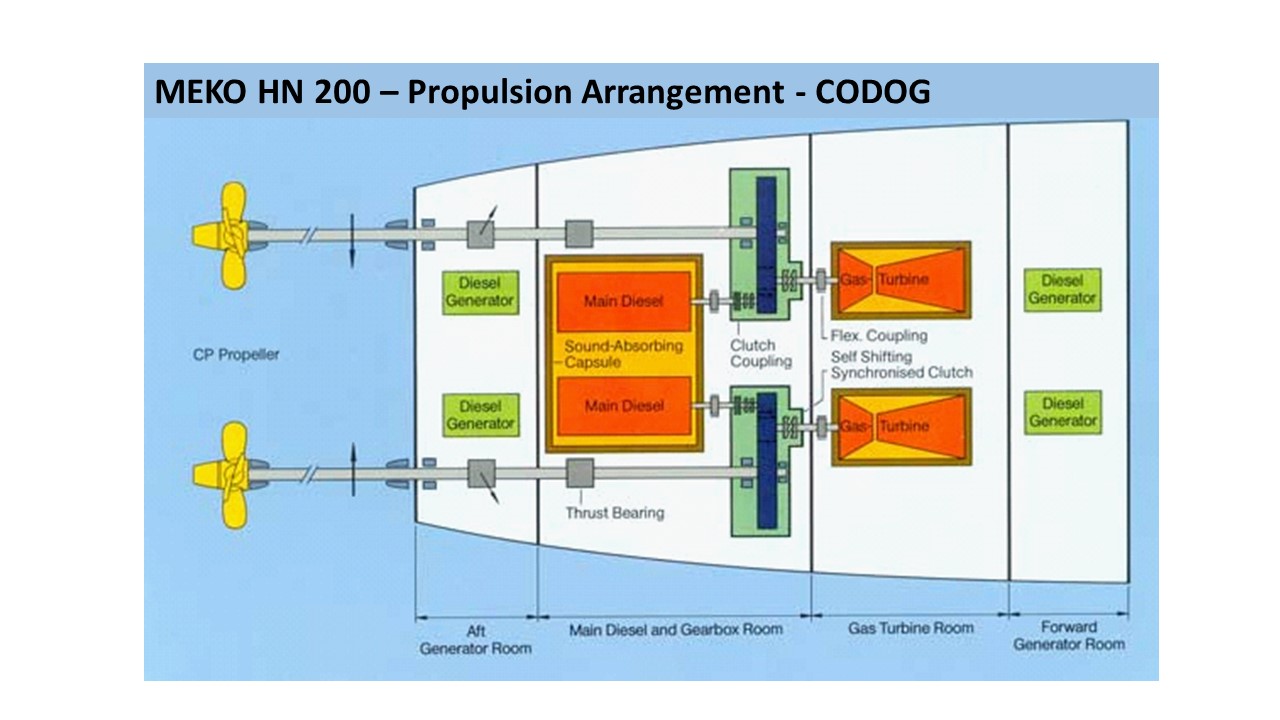 Όμως και αυτό δεν είναι αρκετό. Εάν το προωστήριο σκεύος του πλοίου δεν ήταν ικανό με την ιπποδύναμή του, γενικότερα με την υποστηριξιμότητά του, δεν θα μπορούσε να παρέχει την απαιτούμενη ενέργεια για την πρόωση και για την ηλεκτροπαραγωγή. Σίγουρα, σημαντικά στοιχεία του πλοίου – όχι μόνο λειτουργούν και αποδίδουν ικανοποιητικά – δείχνουν και ένα αξιοσημείωτο endurance (αντοχή) στο χρόνο και σε δύσκολες συνθήκες λειτουργίας. Όπως είναι οι μειωτήρες, είναι οι προπέλες του. Και ήθελα να υπενθυμίσω ότι οι προπέλες του είναι ιδιαίτερα εξελιγμένες.