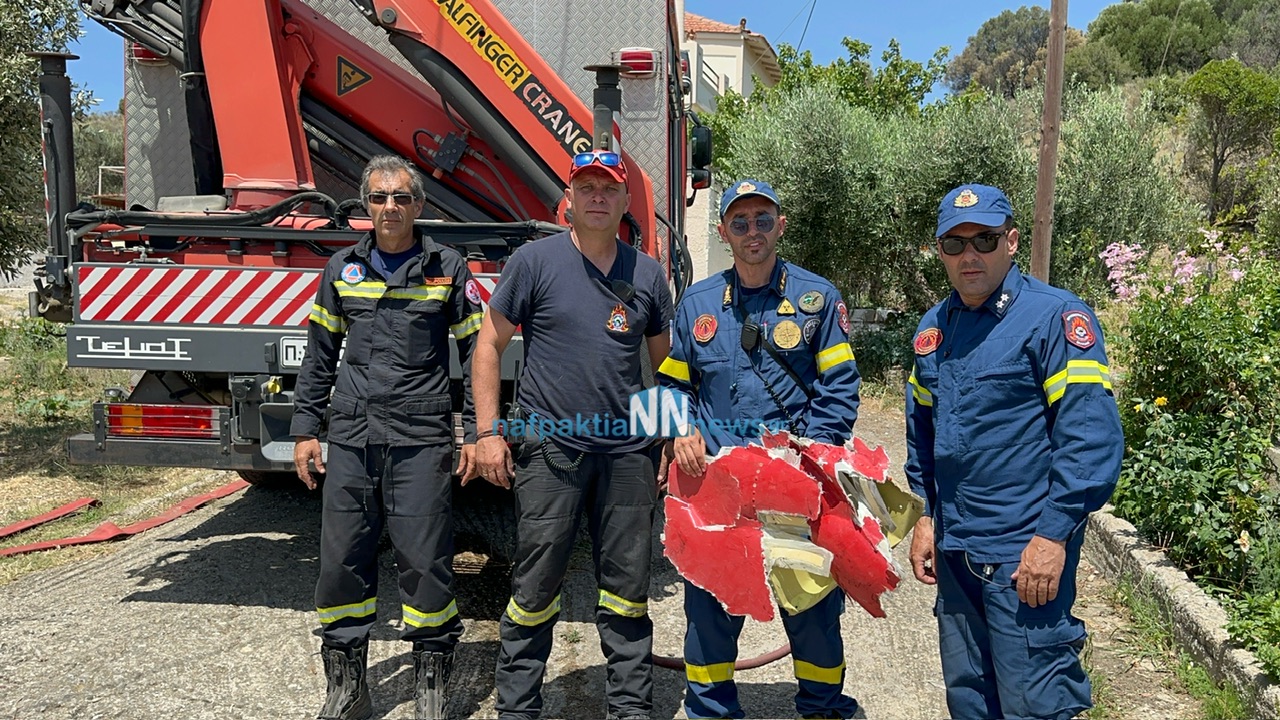 Όπως μεταδίδει το NafpaktiaNews στελέχη της Πυροσβεστικής από την Ναύπακτο, βρήκαν σήμερα το τμήμα της πτέρυγας του Canadair CL-215, το οποίο αποσπάστηκε όταν το αεροσκάφος κατά τη διάρκεια ρίψης προχθές, χτύπησε σε δέντρο. Ευτυχώς το Canadair προσγειώθηκε χωρίς πρόβλημα.