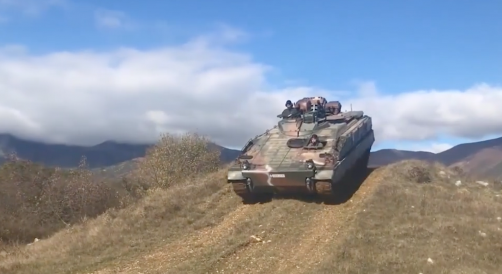 Στο βίντεο παρουσιάζονται πλάνα από ασκήσεις με όλα τα μέσα που έχει στη διάθεσή του, μεταξύ αυτών και τα νεοαποκτηθέντα TOMA Marder αλλά και τα τεθωρακισμένα οχήματα M117.