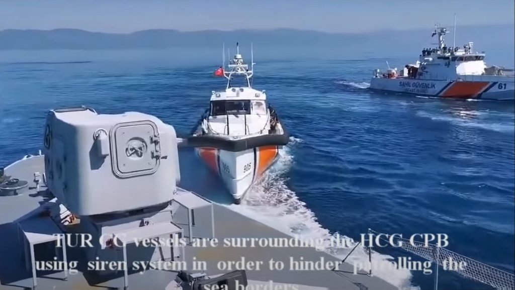 Το υπουργείο Μετανάστευσης και Ασύλου έχει δημοσιοποιήσει βίντεο που αποτυπώνει καρέ-καρέ προκλητικές ενέργειες της τουρκικής ακτοφυλακής απέναντι σε σκάφη του Λιμενικού Σώματος, σε διαφορετικούς χρόνους, στο ανατολικό Αιγαίο.
