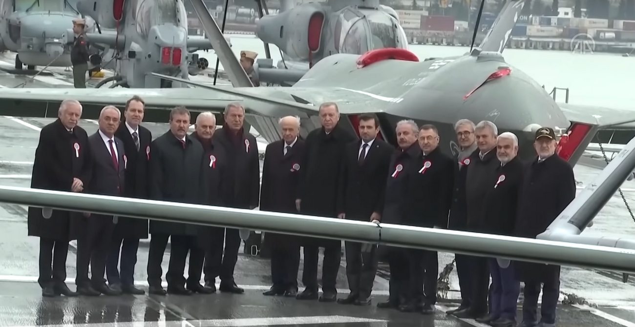 Την ξενάγηση του Ερντογάν στο τουρκικό ελικοπτεροφόρο TCG Anadolu δείχνει βίντεο που δημοσιοποιήθηκε από τουρκικά ΜΜΕ, κατά την τελετή παράδοσης του πλοίου στο Ναυτικό της χώρας, που έγινε χθες, στις 10 Απριλίου. Πέρα από τα τελετουργικά και προπαγανδιστικά, αυτό έχει αρκετό ενδιαφέρον, καθώς προσφέρει και τις πρώτες εικόνες από το εσωτερικό του σκάφους.