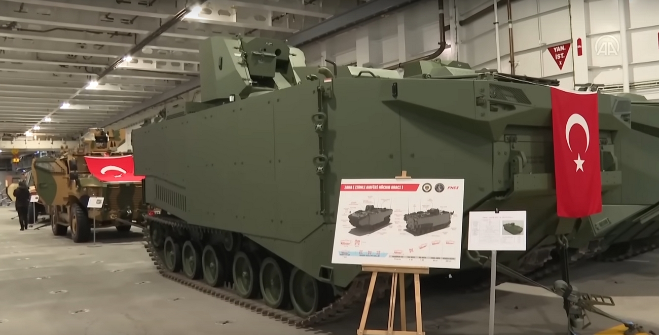 Στο εσωτερικό υπήρχε επίδειξη τεθωρακισμένων της τουρκικής αμυντικής βιομηχανίας ως φόρτος επιχειρήσεων. Εκεί διακρίνονται το θωρακισμένο τροχοφόρο Kipri της εταιρίας BMC, το ΤΟΜΑ ACV-15 της FNSS, τα αμφίβια τεθωρακισμένα ερπυστριοφόρα Zaha πάλι της FNSS, και το 4Χ4 αναγνώρισης Cobra της Otokar.