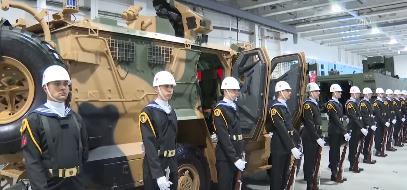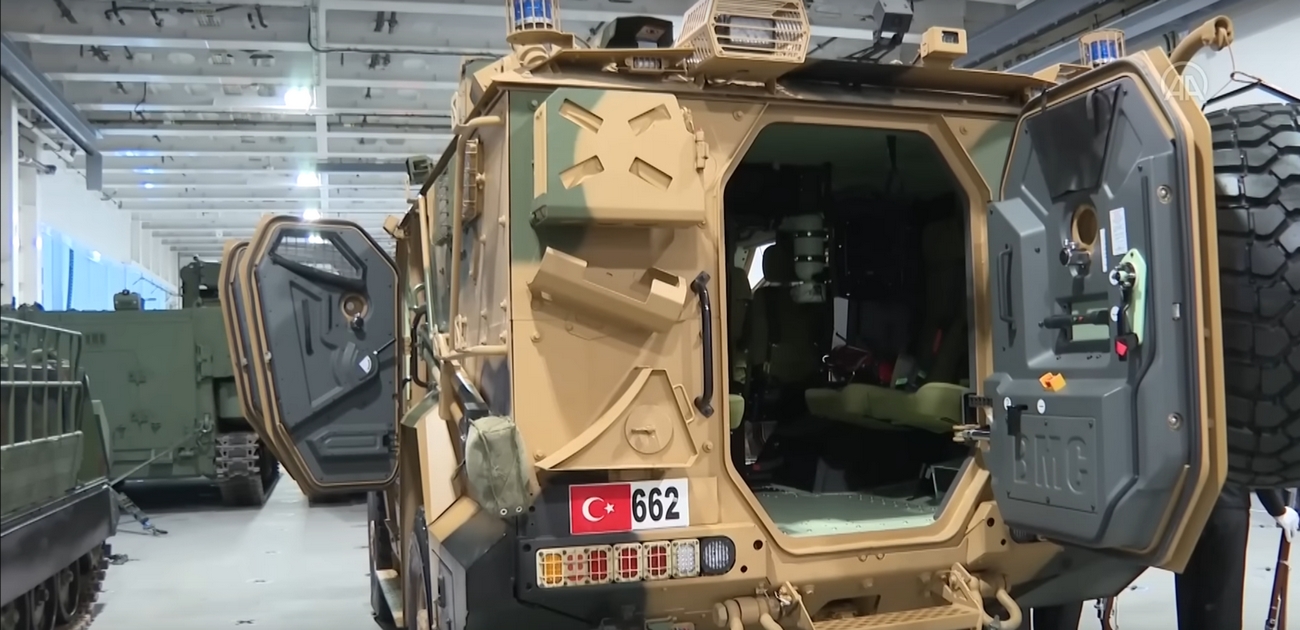 Στο εσωτερικό υπήρχε επίδειξη τεθωρακισμένων της τουρκικής αμυντικής βιομηχανίας ως φόρτος επιχειρήσεων. Εκεί διακρίνονται το θωρακισμένο τροχοφόρο Kipri της εταιρίας BMC, το ΤΟΜΑ ACV-15 της FNSS, τα αμφίβια τεθωρακισμένα ερπυστριοφόρα Zaha πάλι της FNSS, και το 4Χ4 αναγνώρισης Cobra της Otokar.