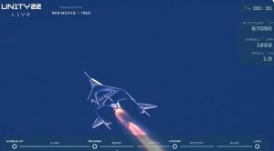 Το υποτροχιακό διαστημόπλοιο Virgin Galactic Unity 22 του Ρίτσαρντ Μπράνσον, πέτυχε να πετάξει σε ύψος 86.189 μέτρων (282.773 πόδια), φτάνοντας ουσιαστικά το διάστημα.