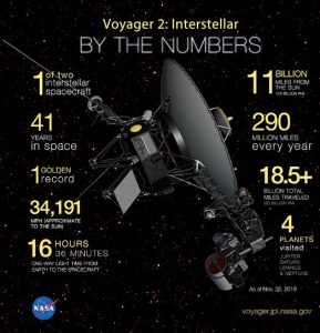 The @NASAVoyager 2 probe no longer feels the solar wind & is flying through the interstellar space between the stars. It carries a working instrument providing 1st-of-its-kind observations of the nature of this gateway. Here's a look by the numbers: https://t.co/DuNBYPaXQj #AGU18 pic.twitter.com/GJGIgDpSHD
