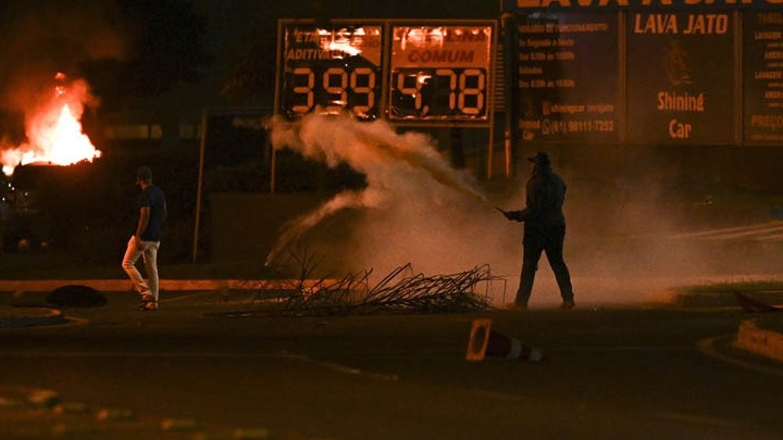 Συγκρούσεις ξέσπασαν χθες Δευτέρα το βράδυ στην Μπραζίλια ανάμεσα σε αστυνομικούς και οπαδούς του απερχόμενου προέδρου, του Ζαΐχ Μπολσονάρου, που απαιτούσαν την απελευθέρωση αυτόχθονα ηγέτη μετά τη σύλληψή του για την υποκίνηση «αντιδημοκρατικών» βίαιων επεισοδίων, διαπίστωσε φωτοειδησεογράφος του Γαλλικού Πρακτορείου επιτόπου.