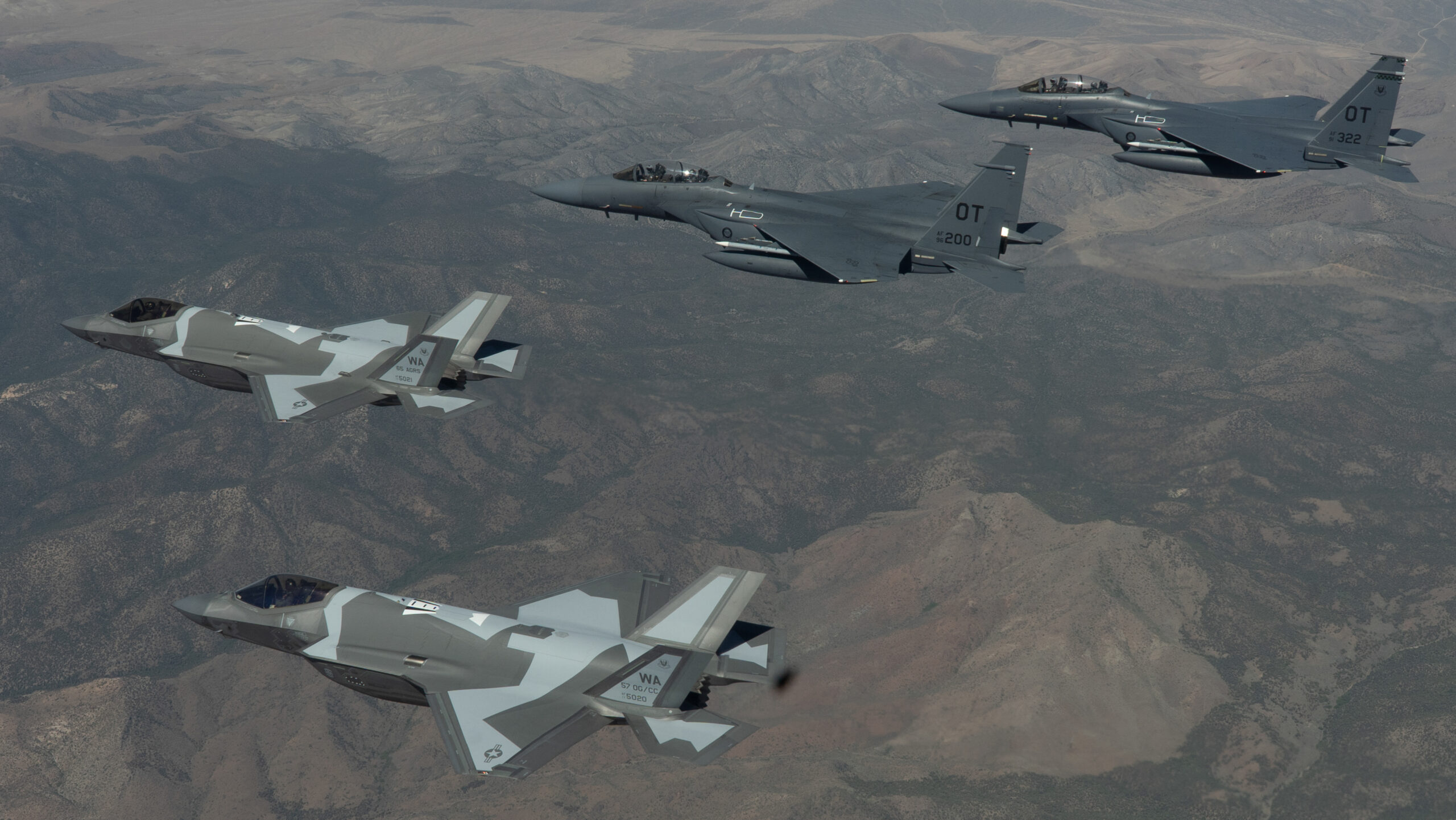 Σίγουρα το Flankerofski είναι πολύ πιο “εμφανίσιμο” από το τυπικό F-35A, και η παραλλαγή του πολύ πιο θελκτική από τη τυπική γκρίζα της USAF. Όπως φαίνεται εδώ, όπου ένα F-15E δίπλα στο F-35A Aggressor δείχνει… καταθλιπτικό, παρά την έντονη ηλιοφάνεια στην έρημο της Νεβάδα.
